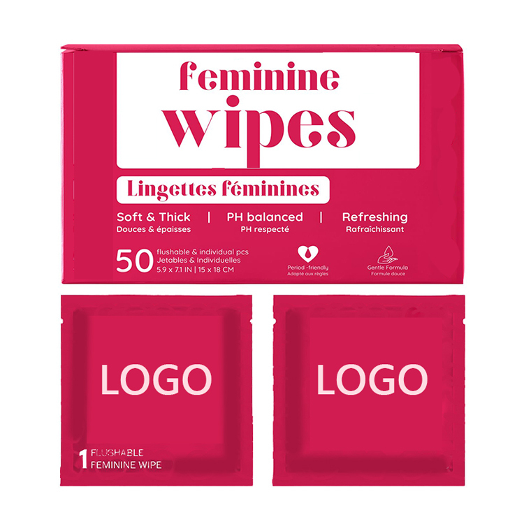 Προσαρμοσμένα 50 πακέτα μεμονωμένη συσκευασία μυρωδείς γυναικείες οικείες πετσέτες